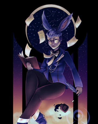 BIOGRAPHY Born in the coldness of the Skatay range but the warmth of the Himnariki clan, Halastja spend the first few day of her life roaming freely in the mountains. This idyllic existence was however, troubled by two things: The shadow of the war in Dalmasca, resulting in drones and soldier scouting near the frontiers, and the fragile health of her younger sibling, Ansar. Thus, her mom decided to escape, running and hiding until a limsan merchant escaping from the agitation took her and her kits in his boat. This skilled navigator named Rashimir took them all under his wing, acting as surrogate father to Deneb. Once in Aleports, where Rashimir hailed from, her mom started to work as a waitress in the tavern until the owners died and she took over.Ostracized by the kids not used to see a viera in those days, she plunged herself into books, reading anything she could get. She developped a fascination with myths, folklore and the old ways of eorzean. The young girl used it to help her brother often bedridden brother to escape reality. And maybe she did, too. It's how she learned the power of histories, the lessons you can learn from years pasts and how important none of it goes to waste.When of age, Deneb left Aleports with already solid base in arcanism, thanks to all the reading. The guild refined her knowledge, and being a gifted practioner of magic, she went and became a travelling adventurer. Quickly, she found her niche into finding and reselling rare artefacts to collectors and researchers, having the eye to discern the era, rarity and use of an old object. She used the money to get certificate at Sharlayan, hoping for a more stable position now that she was growing older. That's how she crossed passed with the Sons of Saint coinach, who gave her a permanent position as an archeologist and historian in her 60s. She worked roughly 15 years for them, and still take missions for this organization to this day. That's how she gained a nearly encyclopedic knowledge of anything Allgan related, fascinated by the lessons the fall of this civilisation left them with.With her reputation now preceeding her in the scholar of history circles, Y'mitra found her a perfect candidate for the recently uncovered art of summoning. That's how she noticed the occasional headaches and visions of the past she got reading recollection from the past wasn't normal. She had the Echo. Altho, a very subpar form of it, only allowing her to see flashes of the long gone when reading testimonies of it. Shaken by this news, this is how she ended up wrapped into the scions of seventh dawn, who kept giving her regular missions of managing their archives and researching others. An echo haver is always useful to them... It's also how with their help, she ended up in Ishgard to write a book about dragon's culture for the scholasticate after the war. Or how she saw the devastation of Garlemald when helping with the tower of Babil. She's still a bystander of history, not being of importance beside her gift.Nowadays, she's spending her time as a freelancer historian/archivist to hire, writing scientific articles or giving conferences. When not over burdened by work, she's accumulating everything about vieran culture to keep under lock and keys, courtesy of the green word traditions. Just in the case her whole species fall, so their ways and wisdom are never to be forgotten...